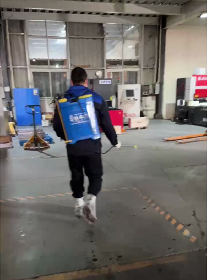 為了有效預(yù)防和控制新冠病毒感染,針對(duì)工廠車間內(nèi)部組織科學(xué)、規(guī)范地做好環(huán)衛(wèi)消殺應(yīng)急處置工作,每日定時(shí)定點(diǎn)全面消毒,有效控制疫情蔓延,降低在廠員工感染風(fēng)險(xiǎn)。