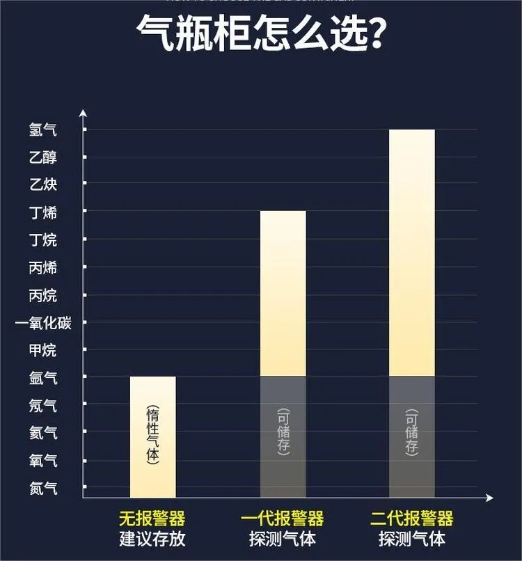 1惰性氣體(氮?dú)?、氬氣、氦氣、氫氣、氧氣)可放置在任何氣瓶柜里。但是無報警器的氣瓶柜費(fèi)用相對較低。所以可以優(yōu)先選擇無報警器。